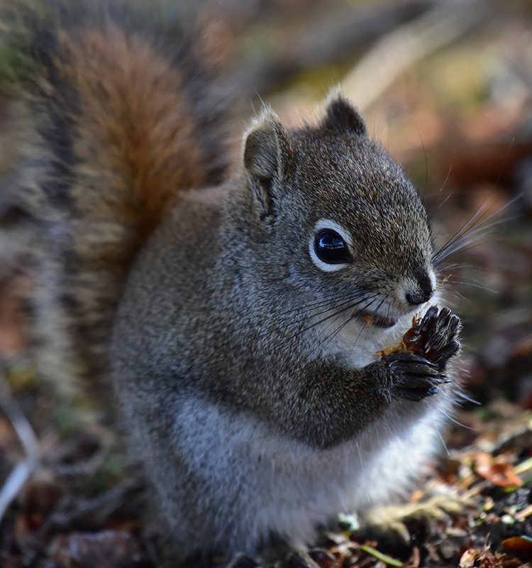 A common sound in the boreal forest is the scolding chitter of the red squirrel as it warns you away from its cache of food. The small mammel's primary diet is the seeds found in the cones of spruce and fir trees. They will stash quantities of these in burrows around the forest to save for the winter. Forgotten cashes are a souce for furture tree growth as the seeds sprout where they were burried. A great example of how the ecosystem maintains it's balance as the forest that sustains the squirrels is in turn sustained by them.